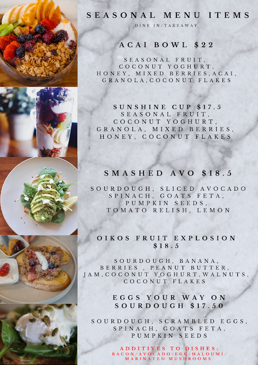 SEASONAL FRUIT, COCONUT YOGHURT, HONEY, MIXED BERRIES ACAI, GRANOLA, COCONUT FLAKES